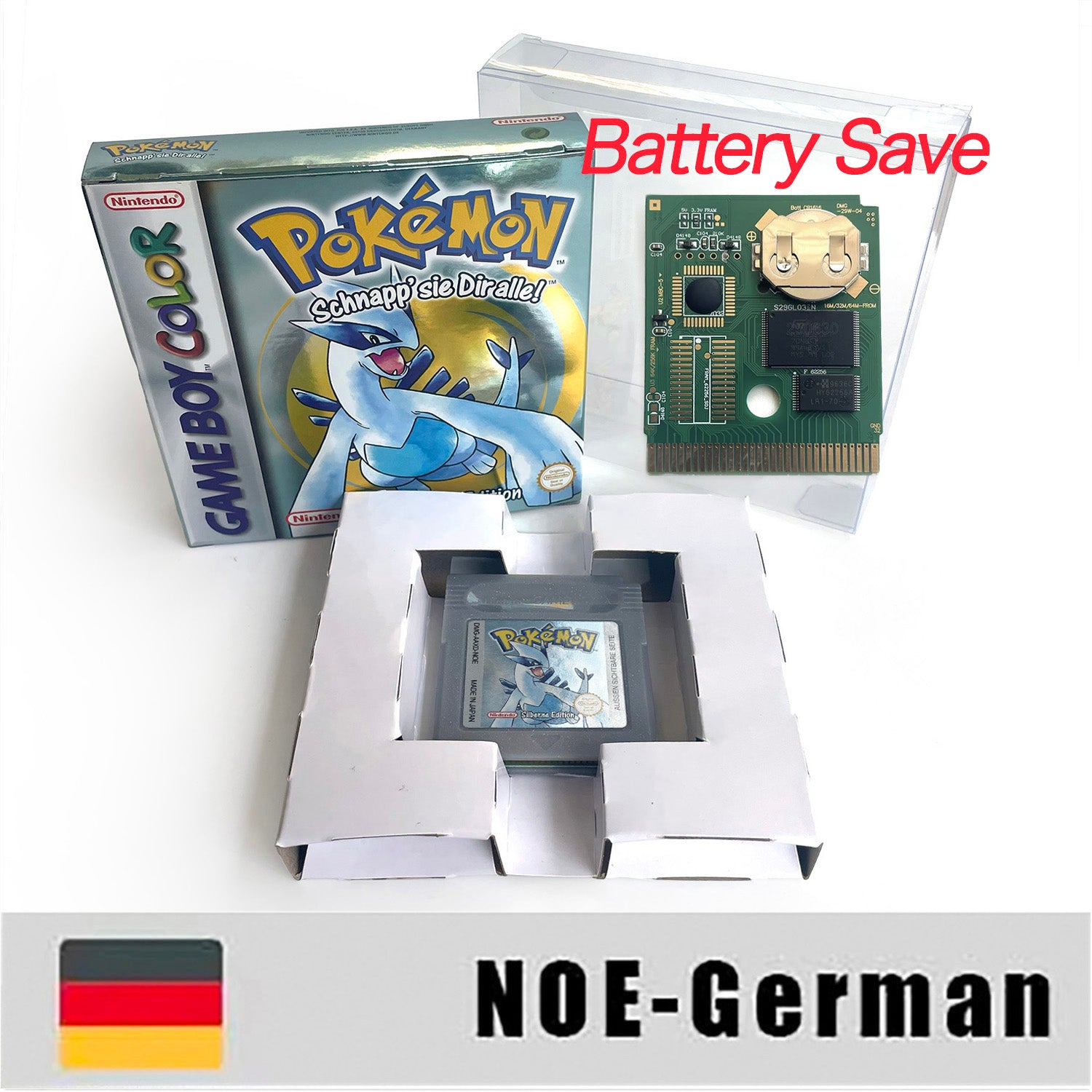 GBC game NOE German pokemon silver version RTC Flash cart Battery save Nintendo pokemon Silber cartridge tray box game boy color