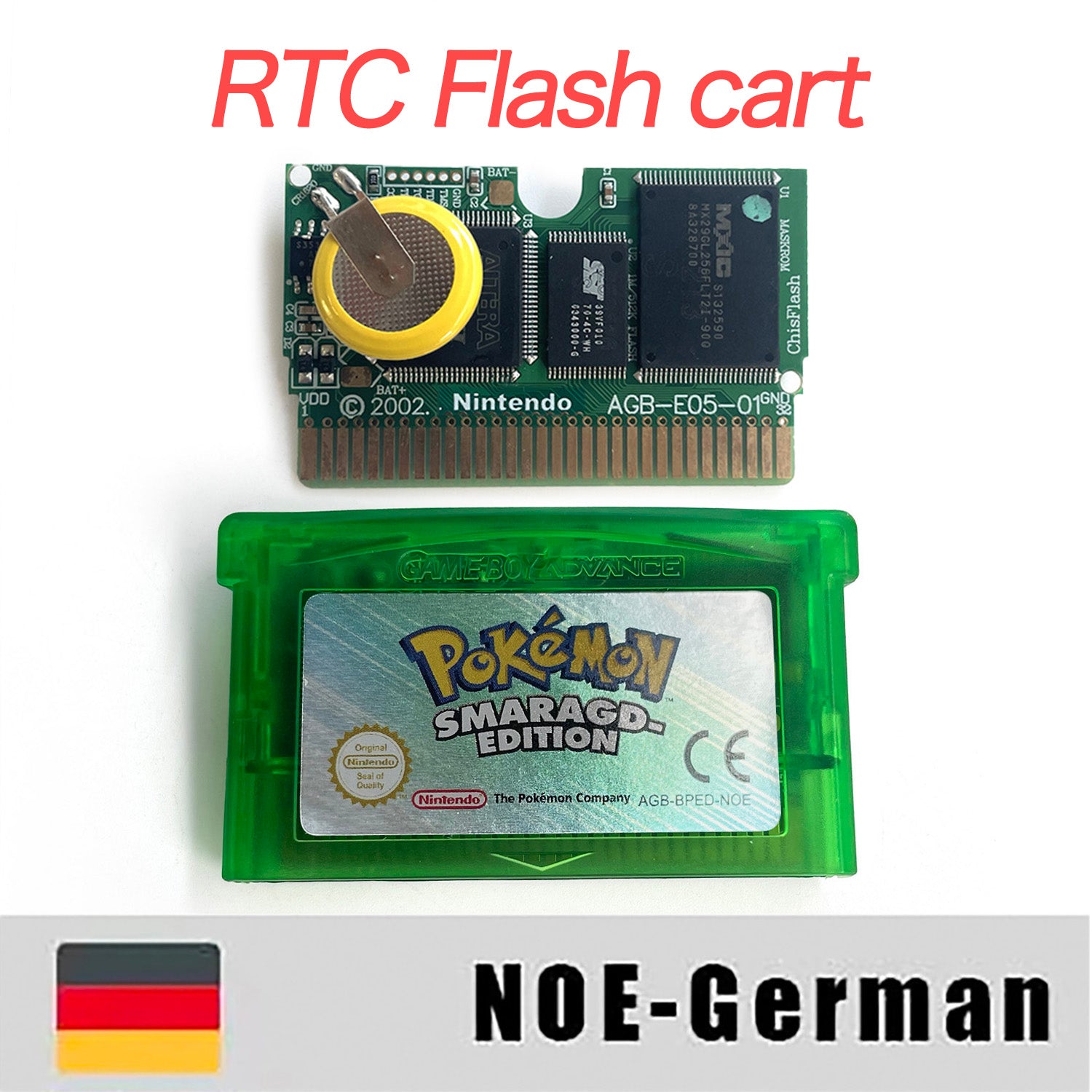 NOE German IC save rtc flash cart Real Time Clock pokemon emerald version box with tray Nintendo game cartridge for gba