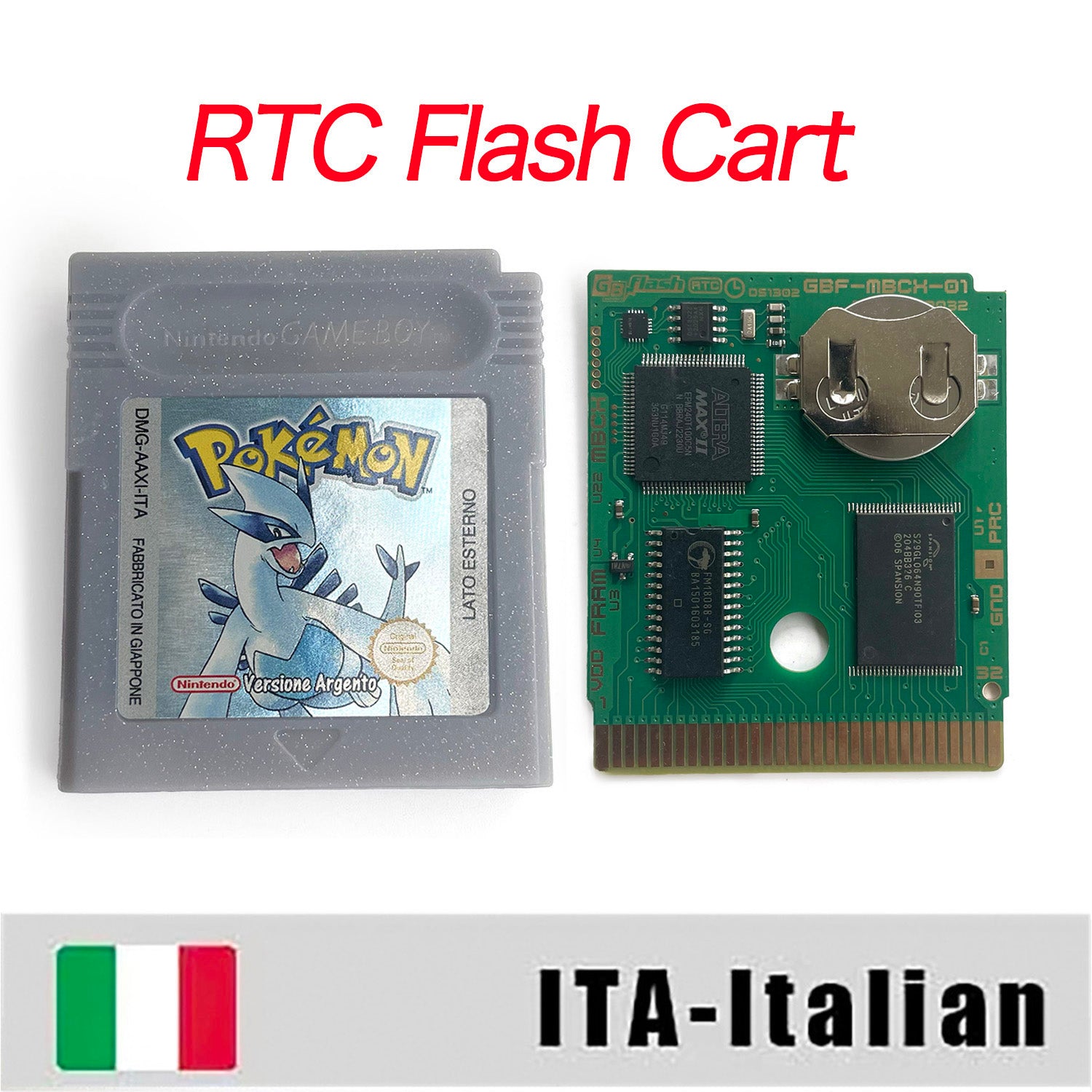 GBC game ITA Italian pokemon silver version RTC Flash cart Battery save Nintendo pokemon argento cartridge tray box game boy color