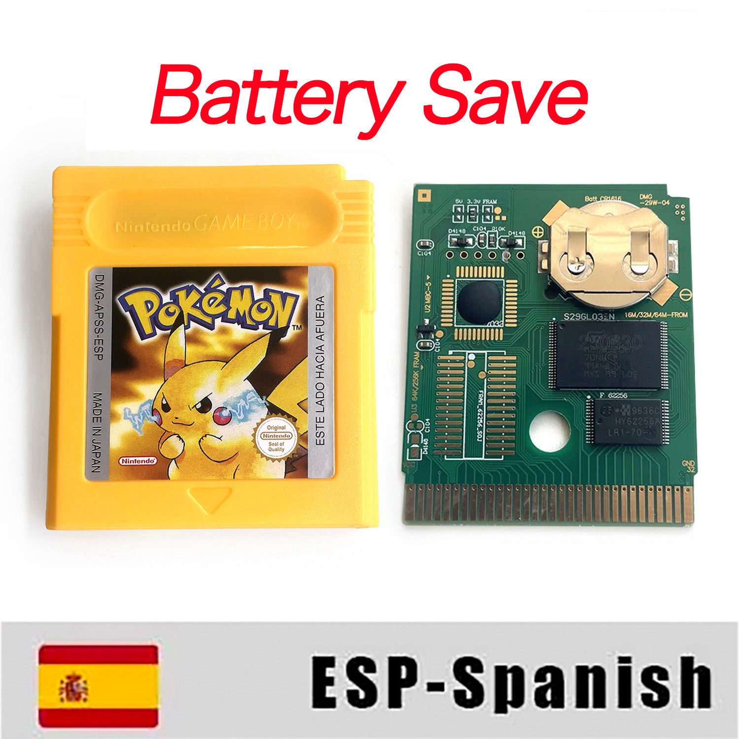 GBC game ESP Spanish pokemon yellow version Nintendo Battery save NO RTC flash pokemon amarillo cartridge tray box gbc game boy color